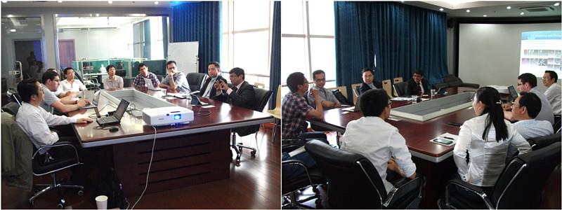 Infosys的两位高层领导兴致勃勃地聆听,并不时同研究院的同行交流。在认真听完研究院的介绍之后,Rangarajan Vellanmore先生和刘宏先生也分别向在座的各位介绍了Infosys公司概况、发展理念、服务领域和主要客户等,并表示Infosys的业务范畴同智慧城市的研究方向有很多重合之处,非常希望今后能够同智慧城市研究院加强合作、交流,信息互补、资源共享,以促成相关科研成果的产业化,服务社会。